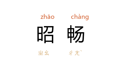 引唐 司空图 《春愁赋》:“愿昭畅於春臺,雪胸襟之滞欷。”前蜀 杜光庭 《又马尚书南斗醮词》:“罪咎蠲销,公私昭畅,存亡介福,眷属延生。”