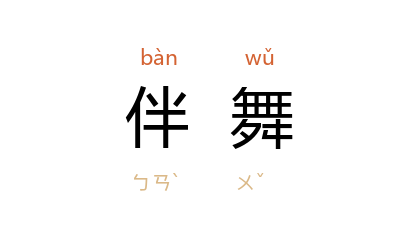 例如:「这次康乐晚会的歌舞剧,由本班同学负责伴舞。」