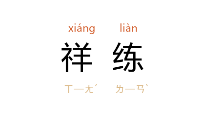 ⒈ 《礼记·檀弓上》:“练而慨然,祥而廓然。”又《杂记下》:“期之丧,十一月而练,十三月而祥,十五月而禫。”练,本指父母丧后第十一月,改素服为练服之祭;祥,原指父母丧后满一周年之祭。后因以“祥练”指丧期或丧服。