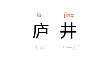 ⒈ 古代井田制,八家共一井,因称共一井的八家庐舍为庐井。