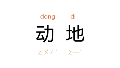 引《公羊传·文公九年》:“地震者何?动地也。”《北齐书·神武纪上》:“神武 亲送之郊,雪涕执别,人皆号慟,哭声动地。”唐 白居易 《长恨歌》:“渔阳 鼙鼓动地来,惊破《霓裳羽衣曲》。”毛泽东 《七律·答友人》:“洞庭 波涌连天雪, 长岛 人歌动地诗。”