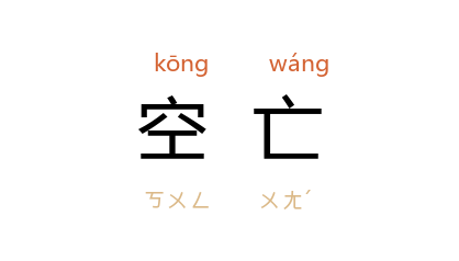 ⒉ 亦作“空忘”、“空房”。古代用干支纪日,十干配十二支,所馀二支,谓之“空亡”。又称孤虚。迷信的人说是凶辰。