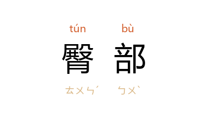 ⒈ 人或某些动物身后两腿上端与腰相连的部位。