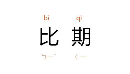 ⒈ 古代官府催缴租税的限期。旧中国银钱业和工商业公定的一种债权债务结算日期。如以每月五日、十日、二十日、二十五日为“小比期”,以每月十五日和月底最后一天为“大比期”。一般拆放短期款项,即以半个月为期。