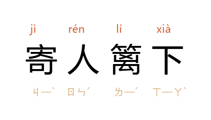 引《红楼梦·第九〇回》:「想起邢岫烟住在贾府园中,终是寄人篱下。」