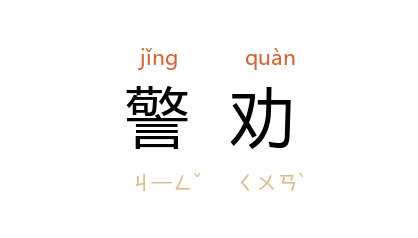 引宋 曾巩 《寄欧阳舍人书》:“至於通材达识,义烈节士,嘉言善状,皆见於篇。则足为后法警劝之道,非近乎史,其将安近?”明 叶盛 《水东日记·山歌》:“吴 人耕作或舟行之劳,多作謳歌以自遣,名唱山歌,中亦多可为警劝者。”