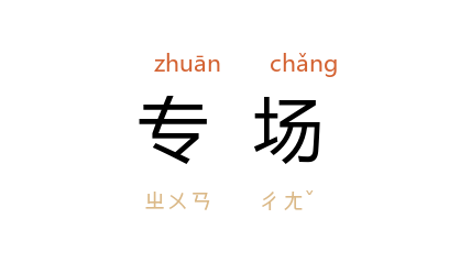 ⒉ 剧场、影院等专为某一部分人演出或放映的场次。亦指特定内容的演出。