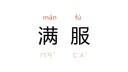 引《儒林外史》第二六回:“同心同意,好好过日子,不必等我满服,就娶一房媳妇进来要紧。”《儿女英雄传》第二三回:“这算得‘无巧不成书’了。要不这样,怎么耗的过姑娘满一年的服呢?要不耗到他满服,我们家怎么娶他呢?”巴金 《秋》一:“我看可以从缓,我现在不忍心想到这种事情,而且我还没有满服。”
