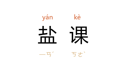 ⒈ 盐税。清制分三项:一灶课,为盐田的地税,由灶丁缴纳;二引课,为运盐的税,由盐商缴纳;三杂课,为一切杂税的总称。