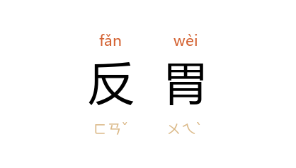 例如:「看见一堆油腻的食物,不禁令我反胃。」