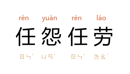 ※ "任怨任劳"的意思解释、任怨任劳是什么意思由国学字典提供。任怨任劳的造句