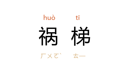 引《史记·赵世家》:“毋为怨府,毋为祸梯。”三国 魏 刘劭 《人物志·八观》:“贪悖之性胜,则彊猛为祸梯。”唐 刘禹锡 《上杜司徒书》:“萌牙始奋,枝叶俄茂,方谓语怪,终成祸梯。”