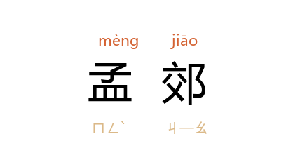 ⒈ 人名。(西元751~814)字东野,湖州武康人,唐代诗人。性狷介,为诗有理致,然思苦奇涩,韩愈引为忘年交。与贾岛齐名,有郊寒岛瘦之称。著有《孟东野诗集》。
