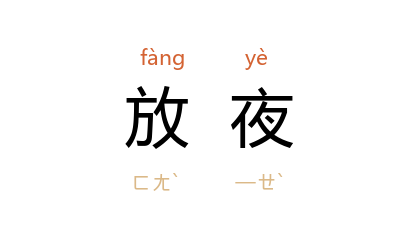 ⒈ 旧时都城有夜禁,街道断绝通行。 唐 代起正月十五夜前后各一日暂时弛禁,准许百姓夜行,称为“放夜”。
