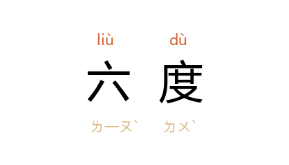 ⒉ 佛教语。又译为“六到彼岸”。“度”是梵文pāramitā(波罗蜜多)的意译。指使人由生死之此岸度到涅盘(寂灭)之彼岸的六种法门:布施、持戒、忍辱、精进、静虑(禅定)、智慧(般若)。