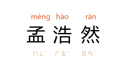 ⒈ 人名。(西元689~740)字浩然。唐代诗人,襄阳人。少好节义,隐居鹿门山。曾于太学赋诗,一坐叹服,其诗属于自然一派,有孟浩然集。