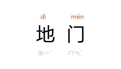 引《河图括地象》:“熊耳山 地门也,其精上为毕附耳星。”南朝 宋 鲍照 《登大雷岸与妹书》:“东顾五洲之隔,西眺九派之分,窥地门之絶景,望天际之孤云。”南朝 陈 徐陵 《陈文皇帝哀册文》:“三 湘 九派,沴气云昏;力折天柱,才倾地门。”