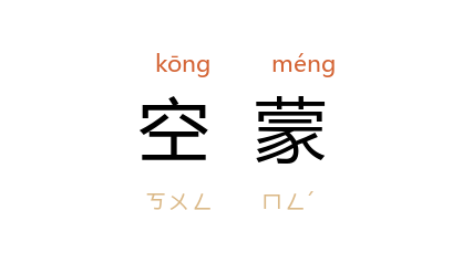 ⒈ 烟雨迷茫的样子。南朝齐·谢朓〈观朝雨〉诗:「空蒙如轻雾,散漫似轻埃。」宋·苏轼〈饮湖上初晴后雨〉诗二首之二:「水光潋滟晴方好,山色空蒙雨亦奇。」也作「涳蒙」。