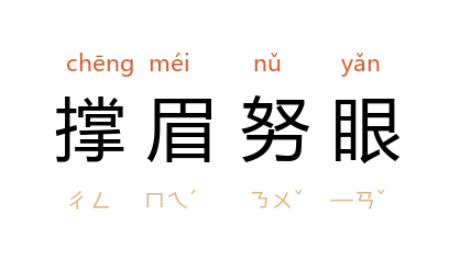 ⒈ 亦作“撑眉努眼”。竖眉瞪眼。