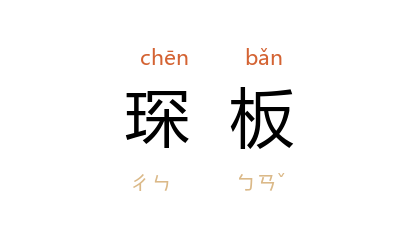 引《初学记》卷二六引 南朝 宋 刘义恭 《启事》:“圣恩优重,猥赐华缨玉笏,珍冠饰首,琛板耀握,非臣朽薄,所宜服受。”宋 任广 《书叙指南·朝事典物》:“玉笏曰琛板。”