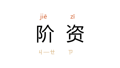 引《南齐书·百官志序》:“肇域官品,区别阶资。”唐 吴兢 《贞观政要·公平》:“是时,朝廷大开选举,或有诈伪阶资者, 太宗 令其自首。”明 宋濂 《南征录序》:“上念其劳,亲擢为工部员外郎。以阶资躐等,力辞不拜。”