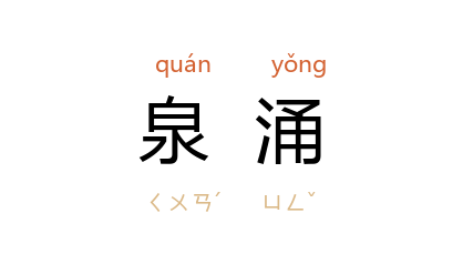 ⒉ 泉水喷涌。比喻事物源源不断,滔滔不绝。