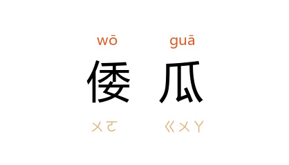引《红楼梦》第四十回:“花儿落了结个大倭瓜。”萧红 《朦胧的期待》:“已经爬上了架的倭瓜,在黄色的花上,有蜜蜂在带着粉的花瓣上来来去去。”