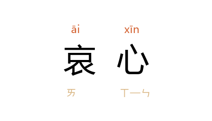 引《礼记·乐记》:“是故其哀心感者,其声噍以杀。”宋 何薳 《春渚纪闻·叔夜有道之士》:“孔子 既祥,五日,弹琴而不成声,言其哀心未忘也。”明 杨慎 《天一生水》:“﹝ 鲍景祥 曰﹞人之一身,贪心动则津生,哀心动则泪生。”