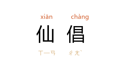 引《文选·张衡<西京赋>》:“总会仙倡,戏豹舞羆。”薛综 注:“仙倡,伪作假形,谓如神也。”吕向 注:“总会,谓集神仙之倡伎。戏豹舞羆,并假作其形。”唐 李白 《上云乐》诗:“老胡感至德,东来进仙倡,五色师子,九苞凤凰。”