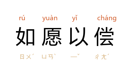 ⒈ 偿:满足。像所希望的那样得到满足。指愿望实现。