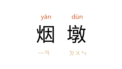 引明 冯梦龙 《智囊补·兵智·刘江》:“﹝ 金州卫 金綫岛 ﹞西北之 望海堝,地高可望诸岛,寇所必繇,实滨海襟喉之地,请筑城堡,立烟墩瞭望。”《东周列国志》第二回:“﹝先王﹞于 驪山 之下置烟墩二十餘所,又置大鼓数十架。”清 刘献廷 《广阳杂记》卷一:“临洺关 在 邢臺县 南,关左倚高山;右临 洺水,势甚雄壮;然山顶之烟墩砲臺,今诚虚设矣。”