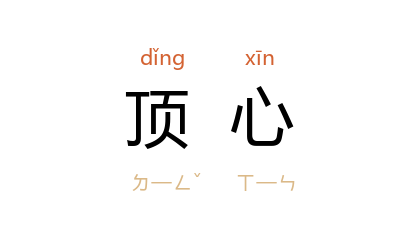 引宋 陶穀 《清异录·肉香炉肉灯台》:“齐 赵 人好以身为供养,且谓两臂为肉灯臺,顶心为肉香炉。”清 采蘅子 《虫鸣漫录》卷一:“伊辈轻拍顶心,相约同游。病者顿觉竟体爽适,沉疴若失。”