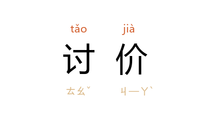引《初刻拍案惊奇》卷六:“问道:‘要多少价钱?’ 慧澄 道:‘讨价万贯。’”《镜花缘》第十一回:“唐敖 听了,因暗暗説道:‘ 九公,凡买物,只有卖者讨价,买者还价。’”阿英 《年画的叫卖》:“讨价银子值一千,羊肉只卖狗肉钱。”