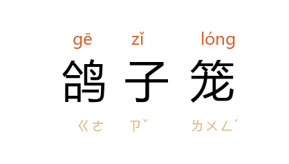 ⒈ 饲养鸽子、供鸽子栖息的笼子。亦比喻窄小的房子。