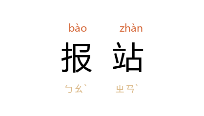⒈ 乘务员向乘客报告车、船等所到站和即将到达的前方一站的站名:提前报站,方便乘客。