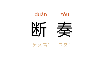 ⒈ 不连贯的,不连接的演奏方式(如乐器的演奏)
