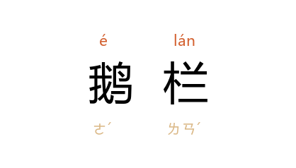 ⒉ 饲养鹅的圈。南朝宋刘义庆《世说新语·忿狷》:“桓南郡小儿时,与诸从兄弟各养鹅共斗。南郡鹅每不如,甚以为忿。乃夜往鹅栏闲,取诸兄弟鹅悉杀之。”后用以为典。