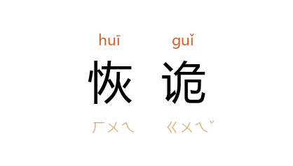 引唐 刘禹锡 《和韩十八侍御见示岳阳楼别窦司直诗》:“鵾鹏疑变化,罔象何恢诡?”明 归有光 《题<瀛涯胜览>》:“其日月风云山水之殊异,惜无以极其恢诡之辞也。”清 蒲松龄 《聊斋志异·罗刹海市》:“扮唱不知何词,腔拍恢诡。”章炳麟 《驳康有为论革命书》:“向使 满洲 制服……恢诡殊形,有若魑魅,行之二百有六十年,而人亦安之无所怪矣。”