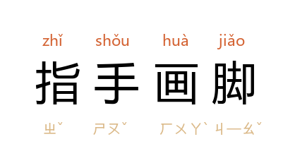 引《初刻拍案惊奇·卷三〇》:「那太湖边人都是会水的,救得上岸,还见将仕指手画脚,挥拳相争,到夜方定。」《儒林外史·第一二回》:「他又不服气,向著官指手画脚的乱吵。」