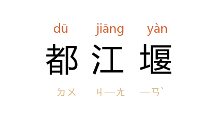 英语Dujiangyan in Sichuan, a famous water engineering project and World Heritage Site, Dujiangyan county level city in Chengdu 成都[Cheng2 du1], Sichuan