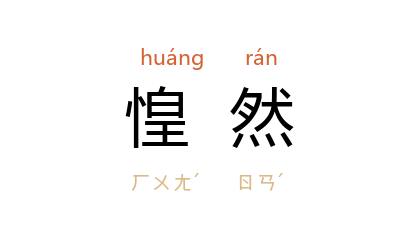 引宋 苏洵 《上欧阳内翰书》之一:“方其始也,入其中而惶然。”清 黄六鸿 《福惠全书·刑名·词讼》:“彼之情已惶然不能自掩矣。”王统照 《号声》:“老举人惶然了!他不知是甚么‘出卖’,上下嘴唇一开一合,却说不出半个字来。”