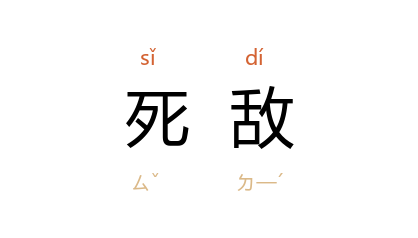 引《汉书·李陵传》:“士张空拳,冒白刃,北首争死敌。”《东周列国志》第三十回:“寡人当与 秦 决一死敌。”
