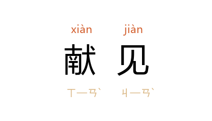 引《史记·大宛列传》:“及 宛 西小国……皆随 汉 使献见天子。”《汉书·地理志下》:“﹝ 黄支国 ﹞州广大,户口多,多异物,自 武帝 以来皆献见。”《资治通鉴·唐太宗贞观二十二年》:“是时四夷大小君长争遣使入献见。”