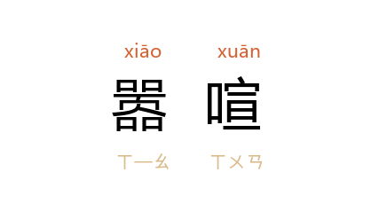 引南朝 宋 谢灵运 《王子晋赞》:“王子 爱清静,区中实嚣諠。”南朝 梁 沉约 《和左丞庾杲之移病》:“嚣喧满眼前,簿领纷盈膝。”唐 李白 《与周刚清溪玉镜潭宴别》诗:“此中得佳境,可以絶嚣喧。”清 蒲松龄 《聊斋志异·黄英》:“未几,菊将开,闻其门嚣喧如市。”艾青 《透明的夜》诗:“人的嚣喧,人的嚣喧。”