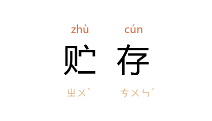 引萧乾 《一本褪色的相册·美国点滴》:“由于它容易腐烂,所以既不好贮存,运输起来损耗又大。”柯岩 《奇异的书简·美的追求者》:“这种遗憾似乎一直贮存在我的记忆深处。”