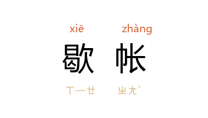 引宋 孟元老 《东京梦华录·驾登宝津楼诸军呈百戏》:“忽有爆仗响,又復烟火出,散处以青幕围绕,列数十辈,皆假面异服,如祠庙中神鬼塑像,谓之歇帐。”