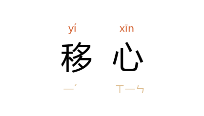 引《国语·晋语一》:“携民,国移心焉。”《后汉书·朱暉传论》:“又 专诸、荆卿 之感激, 侯生、豫子 之投身,情为恩使,命缘义轻。皆以利害移心,怀德成节。非夫交照之本,未可语失得之原也。”《晋书·纪瞻传》:“自九州,被八荒,海外移心,重译入贡。”