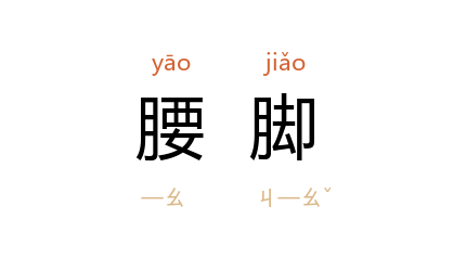 引《梁书·处士传·何胤》:“昔荷圣王眄识,今又蒙旌賁,甚愿诣闕谢恩,但比腰脚大恶,此心不遂耳。”唐 杜甫 《寄赞上人》诗:“年侵腰脚衰,未便阴崖秋。”宋 苏轼 《送运判朱朝奉入蜀》诗:“为话腰脚轻,犹堪踏泉石。”赵光荣 《里湖纪游》诗:“腰脚渐不胜,维时日亭午。”陈毅 《莫干山纪游词》:“千级石磴试腰脚,百寻涧底望高楼。天外云自流。”