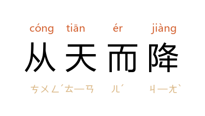 引《西游记·第三一回》:「哥哥,你真是从天而降也!万乞救我一救!」