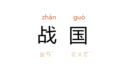 ⒈ 时代名。自 周 威烈王 二十三年(公元前403年) 韩、魏、赵 三家分 晋 列为诸侯起,至 秦始皇 统一六国(公元前221年)止。现在多以 周元王 元年(前475年)至 秦始皇 二十六年(前221年)为 战国 时代。因当时诸侯大国连年战争,故称。